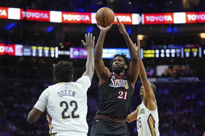 76人:恩比德40分11籃板4助攻2蓋帽,烏布雷19分10籃板,埃奇庫姆15分5助攻,馬克西18分5籃板8助攻,麥凱恩12分。